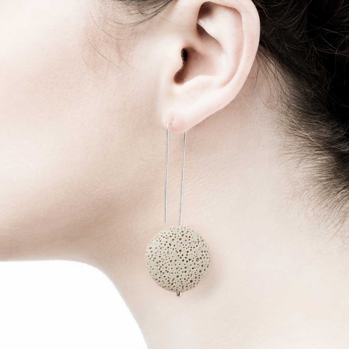 Kõrvarõngad on valmistatud hõbedast ja hallist laavakivist. Kõrvarõngad on kantavad mõlemat pidi, nii pikem kui ka lühem pool ees.
