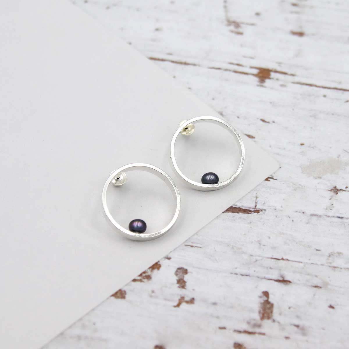 Kõrvarõnga läbimõõt on ca 27mm Hõbedast kõrvarõngad tumeda mageveepärliga